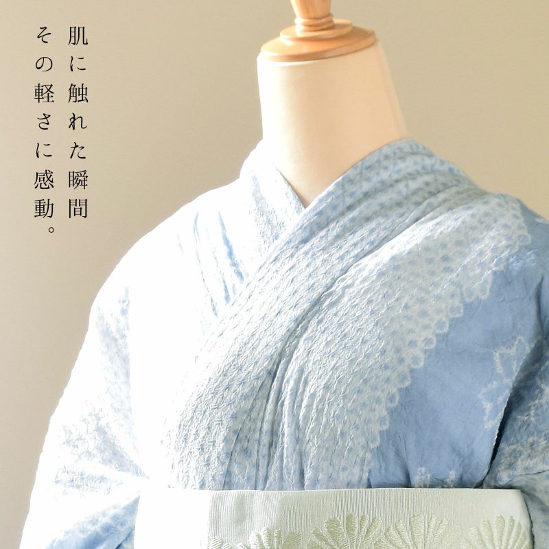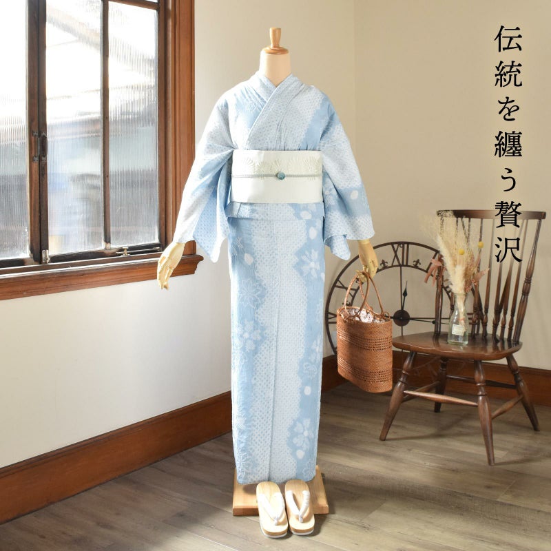 伝統を着る贅沢 長く着られる一生もの浴衣 家で洗えてクリーニングもアイロンも不要 お仕立て上がり絞り浴衣単品 お仕立て上がり絞り浴衣単品「なでしこ サックス」有松絞り 女性浴衣単品 レディース浴衣単品 綿 お仕立て上がり浴衣 yukata【メール便不可】