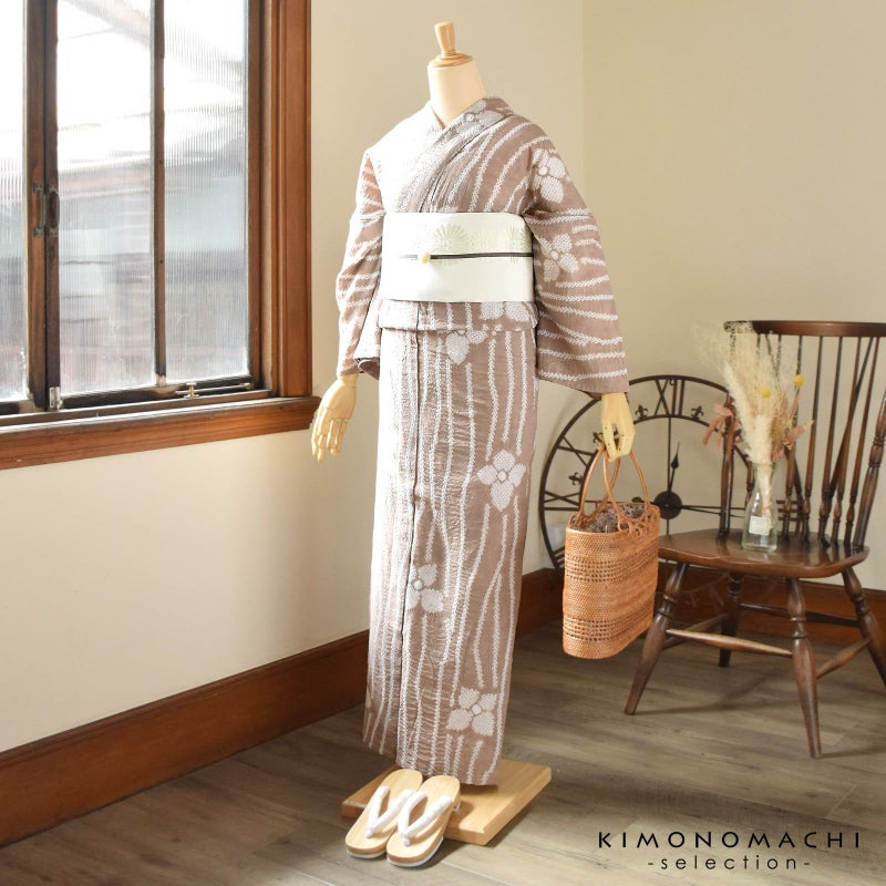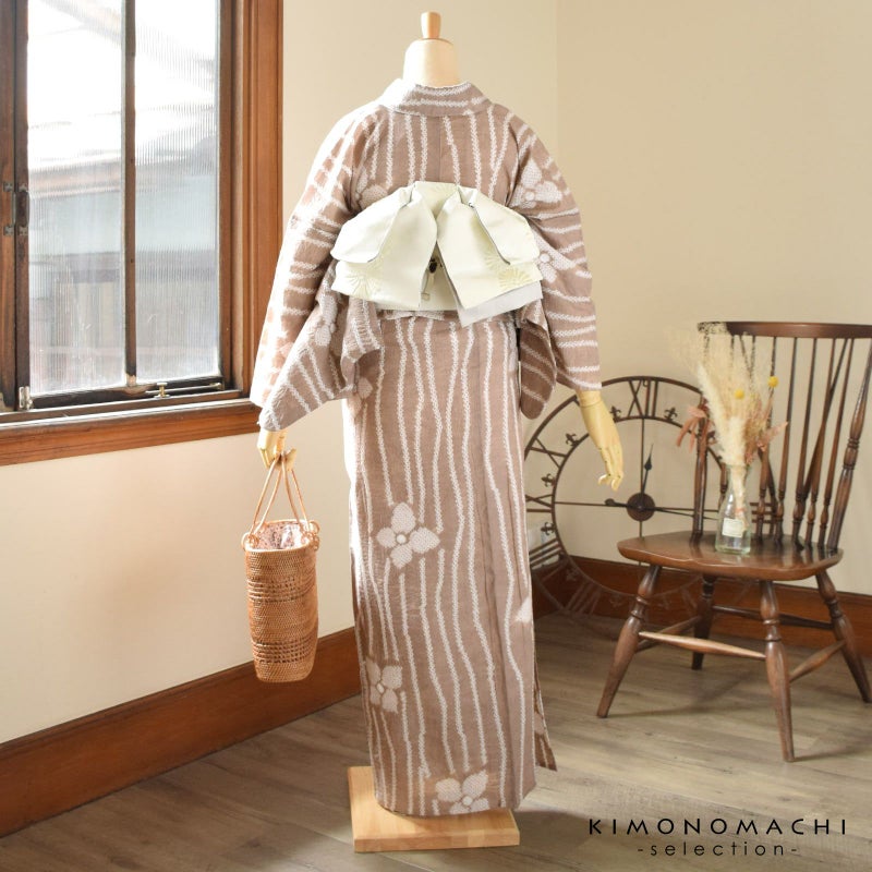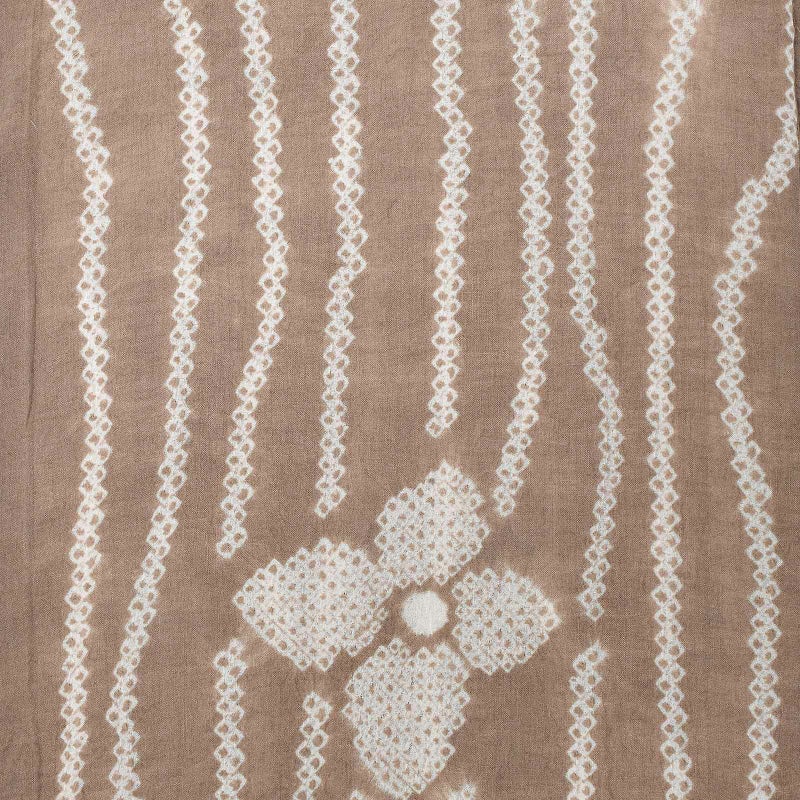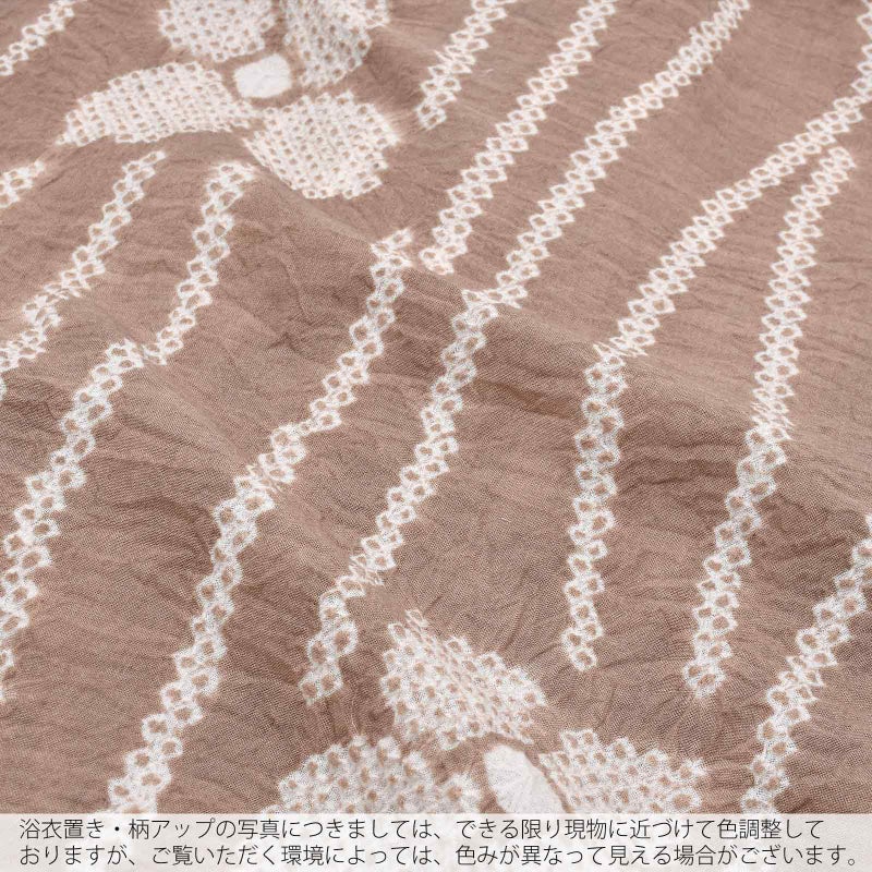 【色柄】浅いココアブラウンの地に細かな白の絞りを繋げたよろけ縞。四葉の花。