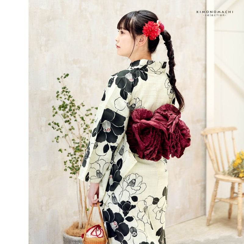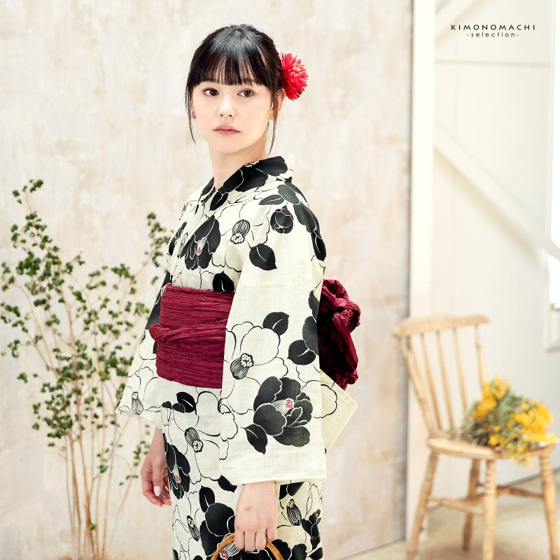 7. 浴衣 レディース 女性浴衣単品「生成り色 椿 0NT-3」綿浴衣 プレタ浴衣 お仕立て上がり浴衣 大人浴衣 Fサイズ 女性用 女性浴衣 ゆかた【メール便不可】