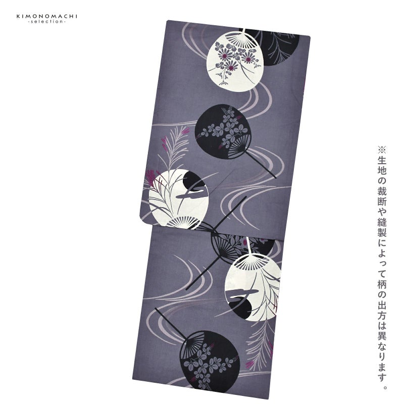 浴衣 レディース 女性浴衣単品「グレー うちわ 3IS-2」綿浴衣 プレタ浴衣 お仕立て上がり浴衣 大人浴衣 Fサイズ 女性用 女性浴衣 ゆかた