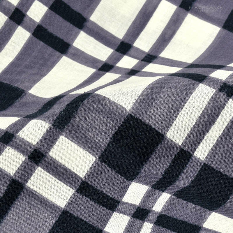 【色柄】オフホワイトの地に、やや藤色みの墨色の格子。濃淡のある手描き調の線が魅力的です。