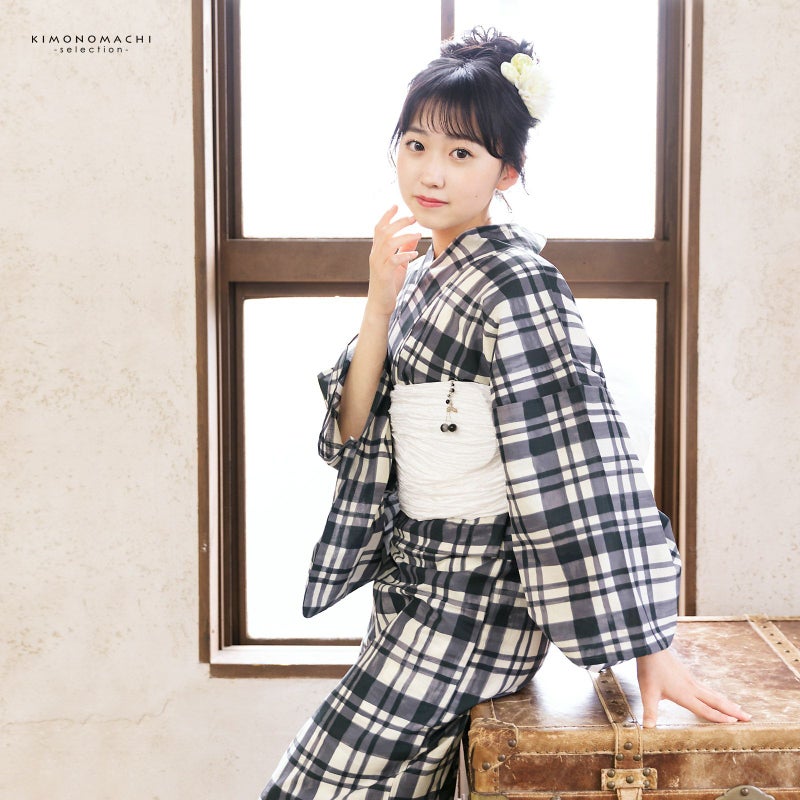 5. 浴衣 レディース 女性浴衣単品「白地 墨色格子 3IS-4」綿浴衣 プレタ浴衣 お仕立て上がり浴衣 大人浴衣 Fサイズ 女性用 女性浴衣 ゆかた【メール便不可】ss2403ykl10