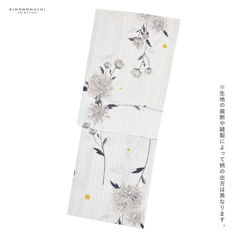 浴衣 レディース 女性浴衣単品「白地 細縞に菊 3NT-2」綿浴衣 プレタ浴衣 お仕立て上がり浴衣 大人浴衣 Fサイズ 女性用 女性浴衣 ゆかた【メール便不可】