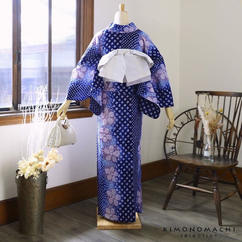 大人のお洒落な絞りの浴衣単品です。お仕立て上がりなので、すぐにご着用いただけます。