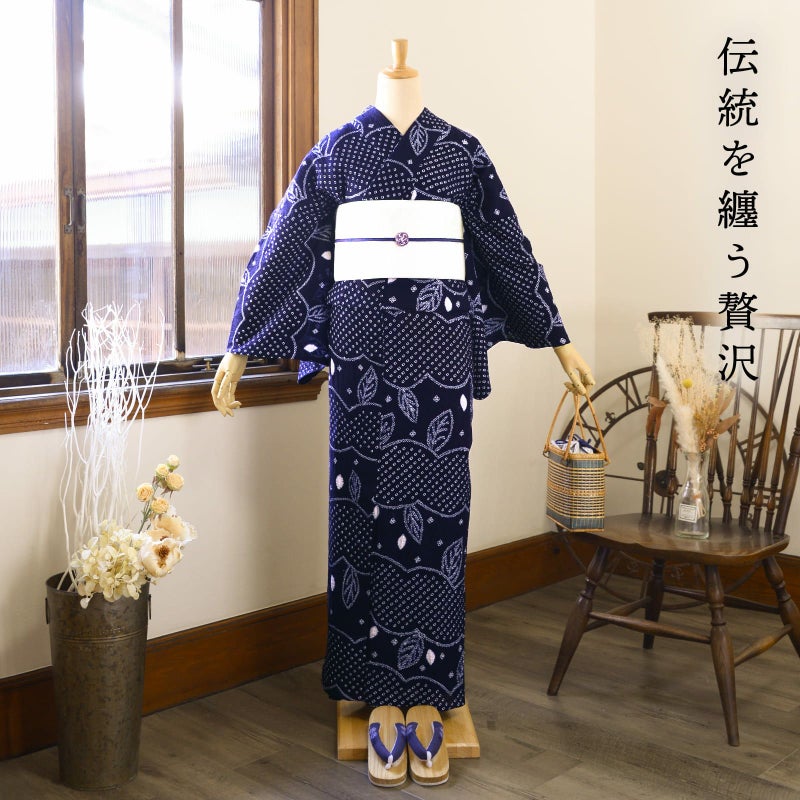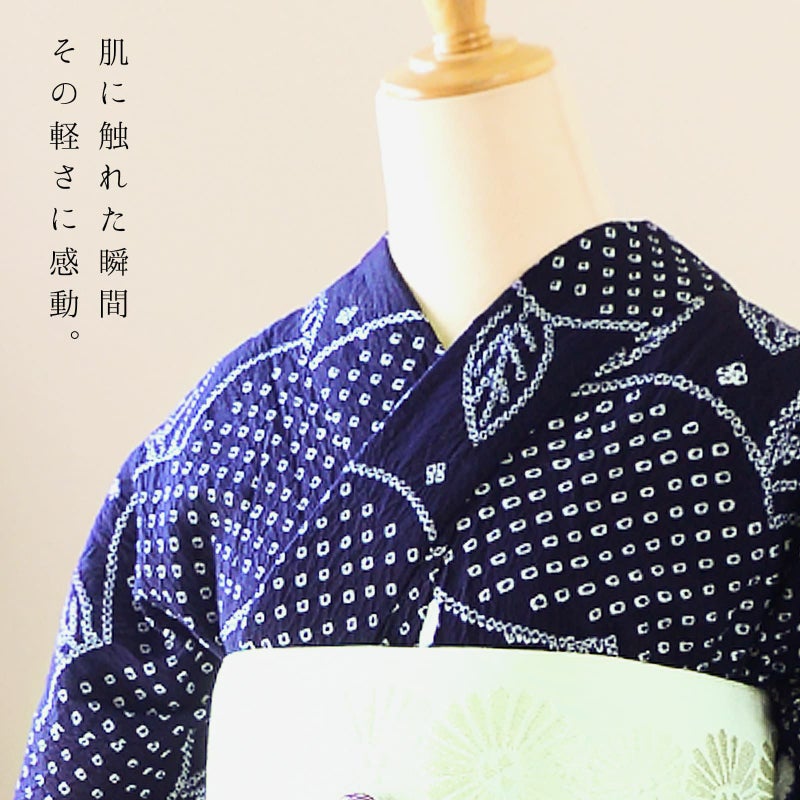 伝統を着る贅沢 長く着られる一生もの浴衣 家で洗えてクリーニングもアイロンも不要 お仕立て上がり絞り浴衣単品 お仕立て上がり絞り浴衣単品「若葉 紺」有松絞り 女性浴衣単品 レディース浴衣単品 綿 お仕立て上がり浴衣 yukata【メール便不可】