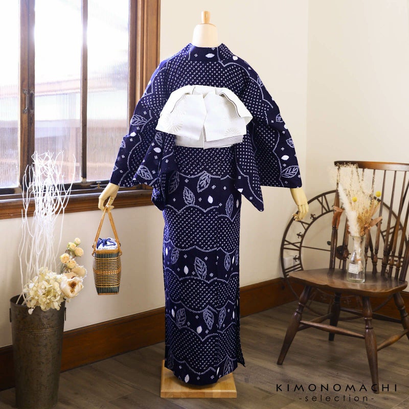5. お仕立て上がり絞り浴衣単品「若葉 紺」有松絞り 女性浴衣単品 レディース浴衣単品 綿 お仕立て上がり浴衣 yukata【メール便不可】