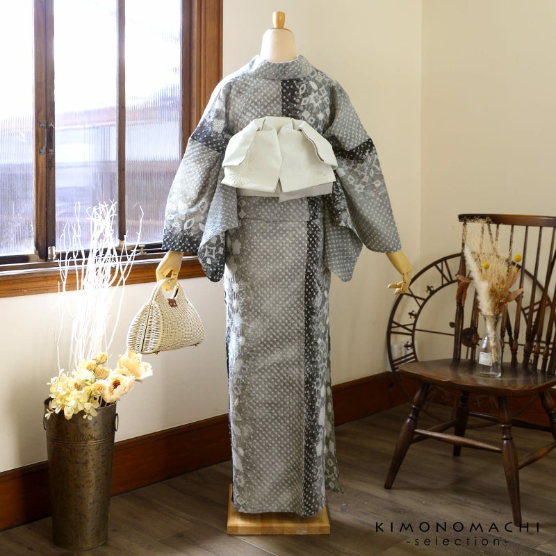 お仕立て上がり絞り浴衣単品「イソップ グレー黒ぼかし」有松絞り 女性浴衣単品 レディース浴衣単品 綿 お仕立て上がり浴衣 yukata