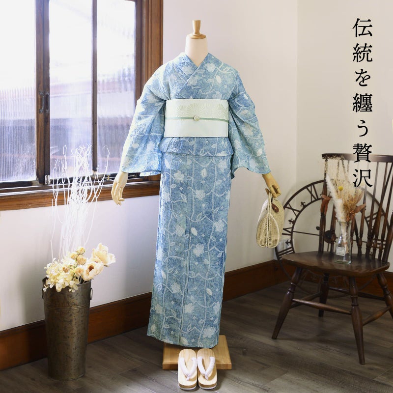 伝統を着る贅沢 長く着られる一生もの浴衣 家で洗えてクリーニングもアイロンも不要 お仕立て上がり絞り浴衣単品 お仕立て上がり絞り浴衣単品「フラワータペストリー ブルーグレー」有松絞り 女性浴衣単品 レディース浴衣単品 綿 お仕立て上がり浴衣 yukata【メール便不可】