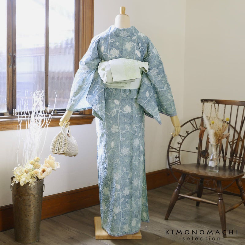 5. お仕立て上がり絞り浴衣単品「フラワータペストリー ブルーグレー」有松絞り 女性浴衣単品 レディース浴衣単品 綿 お仕立て上がり浴衣 yukata【メール便不可】