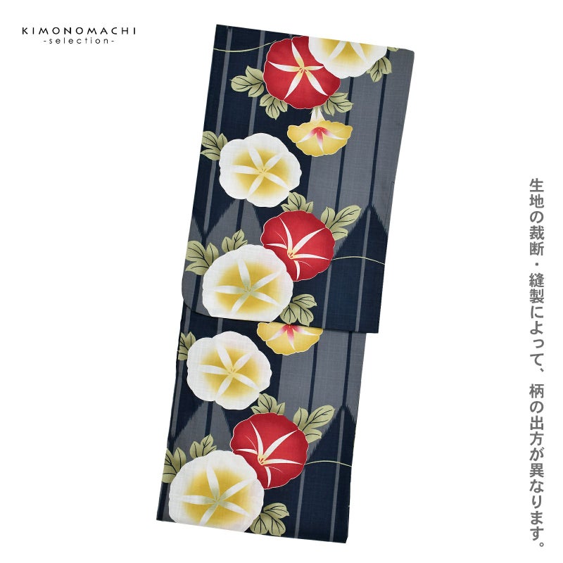 3. 浴衣 レディース 女性浴衣単品 「スイートリリー:紺地 朝顔矢絣」Fサイズ 綿浴衣 プレタ浴衣 お仕立て上がり浴衣 ブランド浴衣 大人浴衣 女性用 女性浴衣 ゆかた【メール便不可】