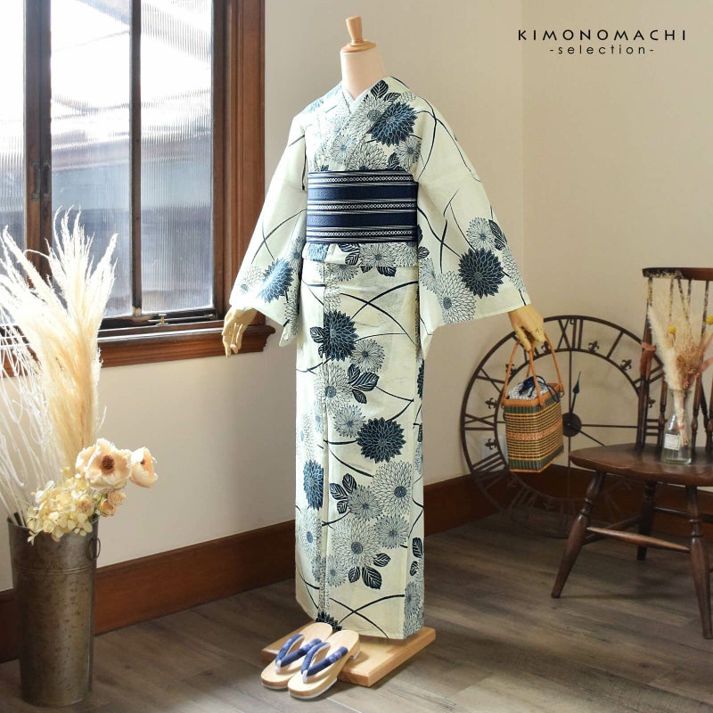 5. 浴衣 レディース 単品 お仕立て上がり浴衣 綿絽浴衣「流れ菊 さび紺」えんむすび Fサイズ シック 大人 モダン 粋 古典 ゆかた 女性 ブランド ブランド浴衣 花火大会 夏祭り 綿 絽 夏着物にも【メール便不可】