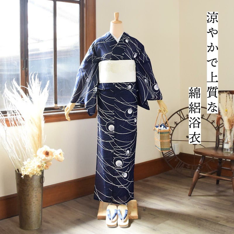 5. 浴衣 レディース 単品 お仕立て上がり浴衣 綿絽浴衣「蛍 紺」えんむすび Fサイズ シック 大人 モダン 粋 古典 ゆかた 女性 ブランド ブランド浴衣 花火大会 夏祭り 綿 絽 夏着物にも【メール便不可】