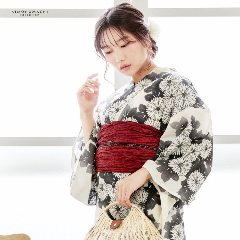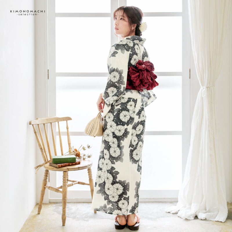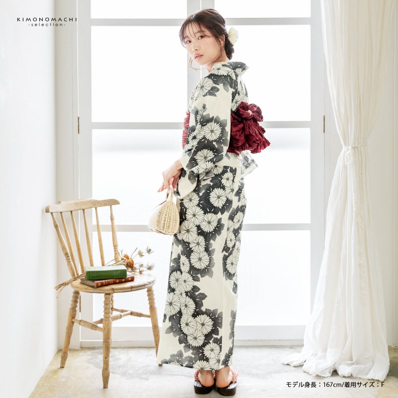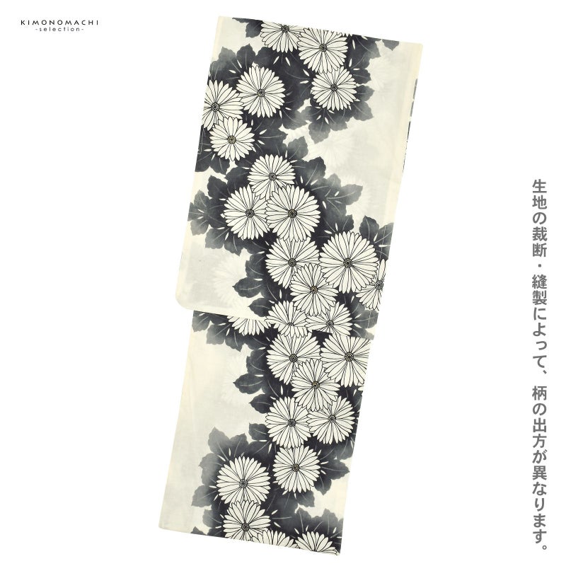 浴衣 レディース 女性浴衣単品 「アイボリー 墨色、連菊」Fサイズ