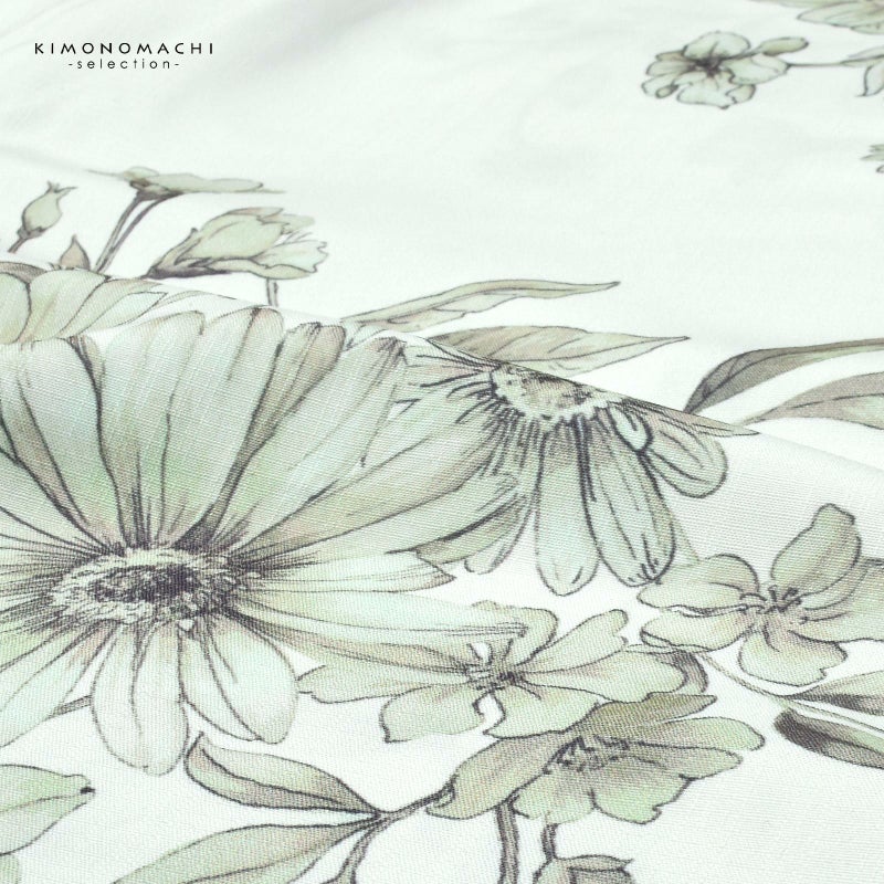 さらりとした着心地のポリエステル浴衣。襦袢を合わせて夏着物としても。 浴衣 レディース 女性浴衣単品「ガーベラ ペールグリーン」ポリエステル浴衣 プレタ浴衣 お仕立て上がり浴衣 大人浴衣 Fサイズ 女性用 女性浴衣 ゆかた【メール便不可】