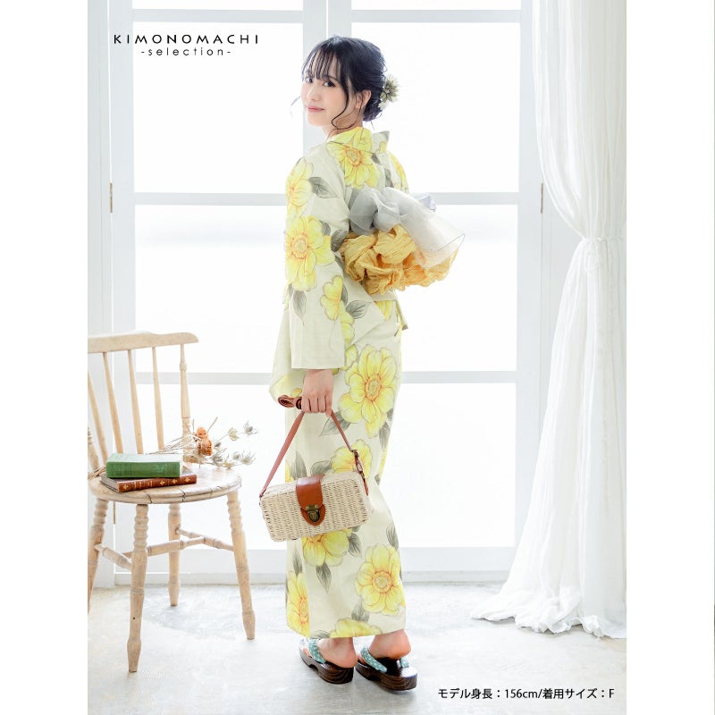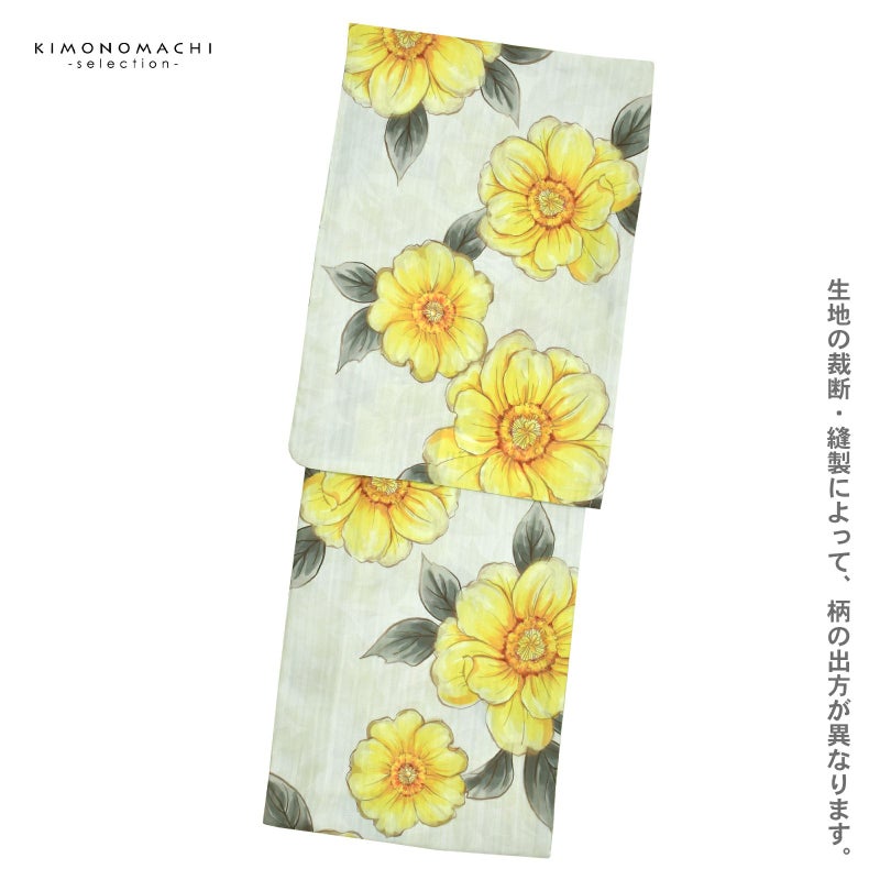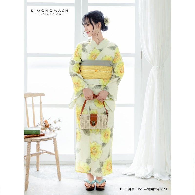 浴衣 レディース 女性浴衣単品「ジニア シトラスイエロー」ポリエステル浴衣 プレタ浴衣 お仕立て上がり浴衣 大人浴衣 Fサイズ 女性用 女性浴衣 ゆかた