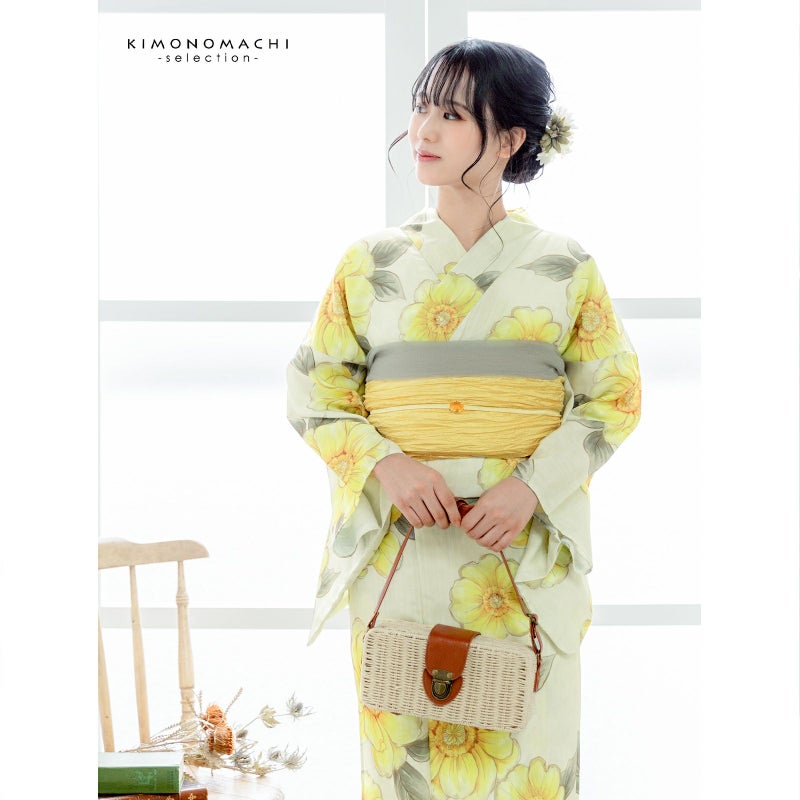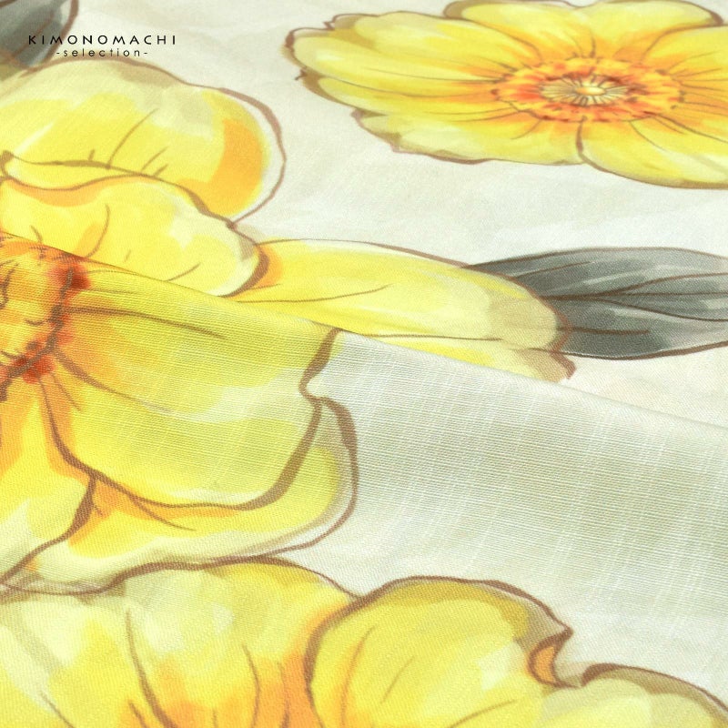 さらりとした着心地のポリエステル浴衣。襦袢を合わせて夏着物としても。 浴衣 レディース 女性浴衣単品「ジニア シトラスイエロー」ポリエステル浴衣 プレタ浴衣 お仕立て上がり浴衣 大人浴衣 Fサイズ 女性用 女性浴衣 ゆかた【メール便不可】
