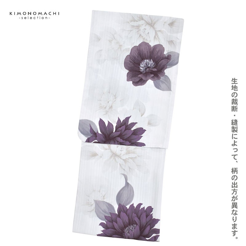 浴衣 レディース 女性浴衣単品「ダリア モーヴグレー」ポリエステル浴衣 プレタ浴衣 お仕立て上がり浴衣 大人浴衣 Fサイズ 女性用 女性浴衣 ゆかた【メール便不可】