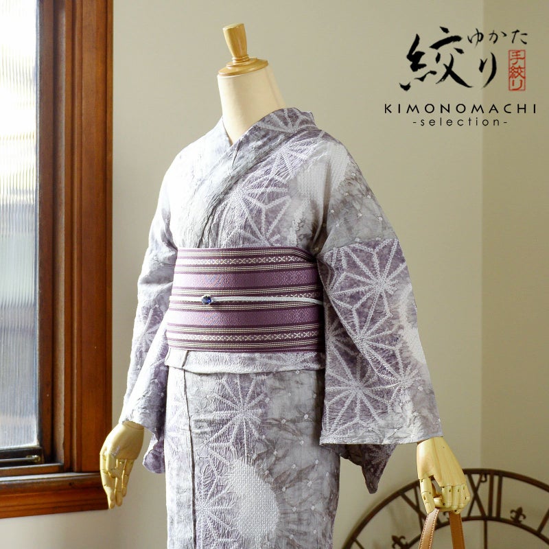 大人のお洒落な絞りの浴衣単品です。お仕立て上がりなので、すぐにご着用いただけます。