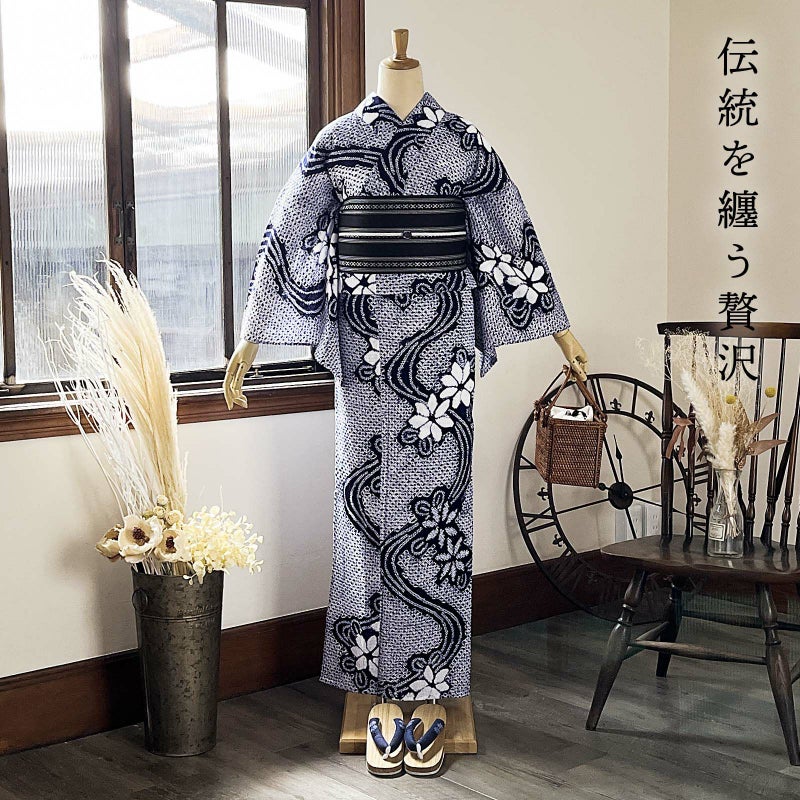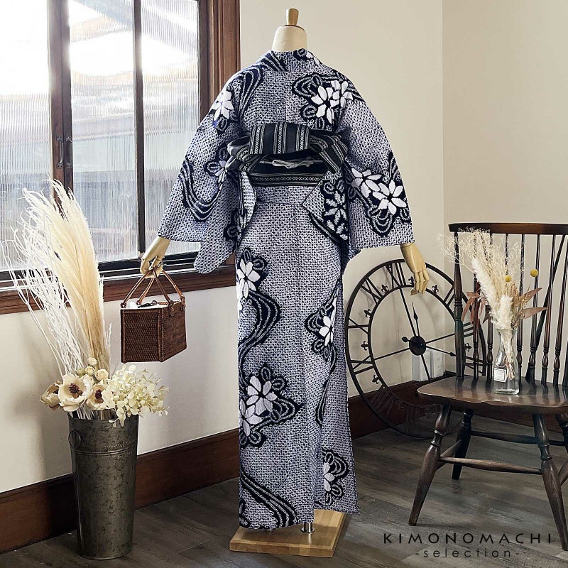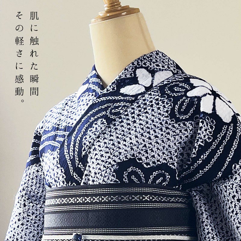 大人のお洒落な絞りの浴衣単品です。お仕立て上がりなので、すぐにご着用いただけます。