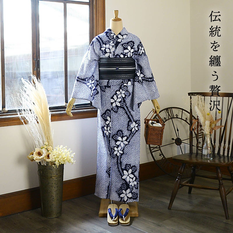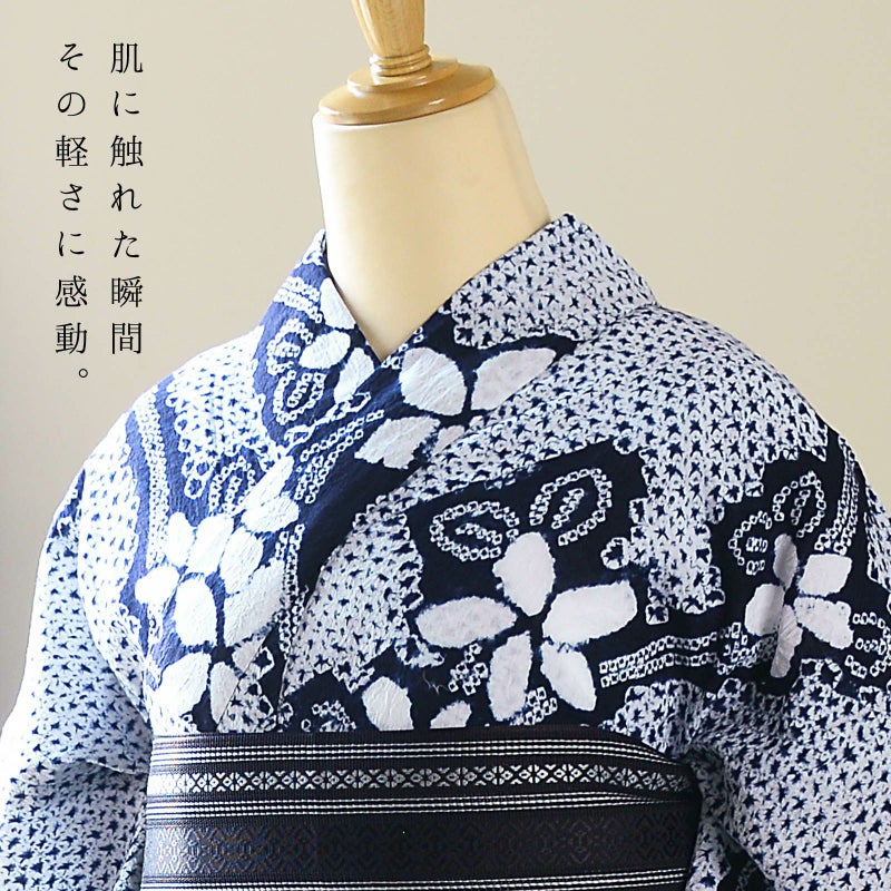 大人のお洒落な絞りの浴衣単品です。お仕立て上がりなので、すぐにご着用いただけます。