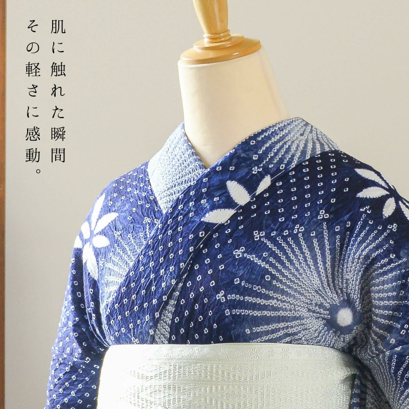 大人のお洒落な絞りの浴衣単品です。お仕立て上がりなので、すぐにご着用いただけます。