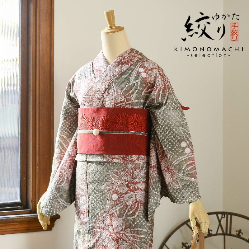 大人のお洒落な絞りの浴衣単品です。お仕立て上がりなので、すぐにご着用いただけます。