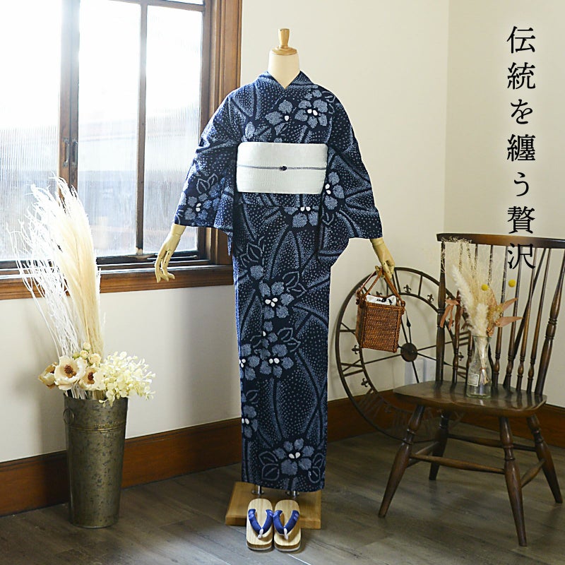 大人のお洒落な絞りの浴衣単品です。お仕立て上がりなので、すぐにご着用いただけます。