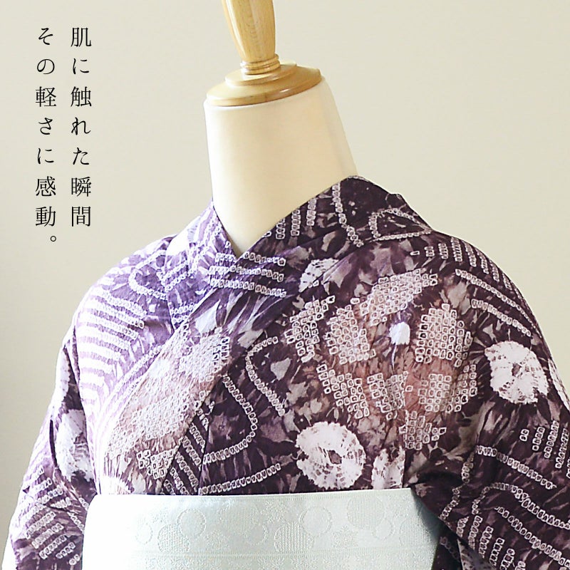 大人のお洒落な絞りの浴衣単品です。お仕立て上がりなので、すぐにご着用いただけます。