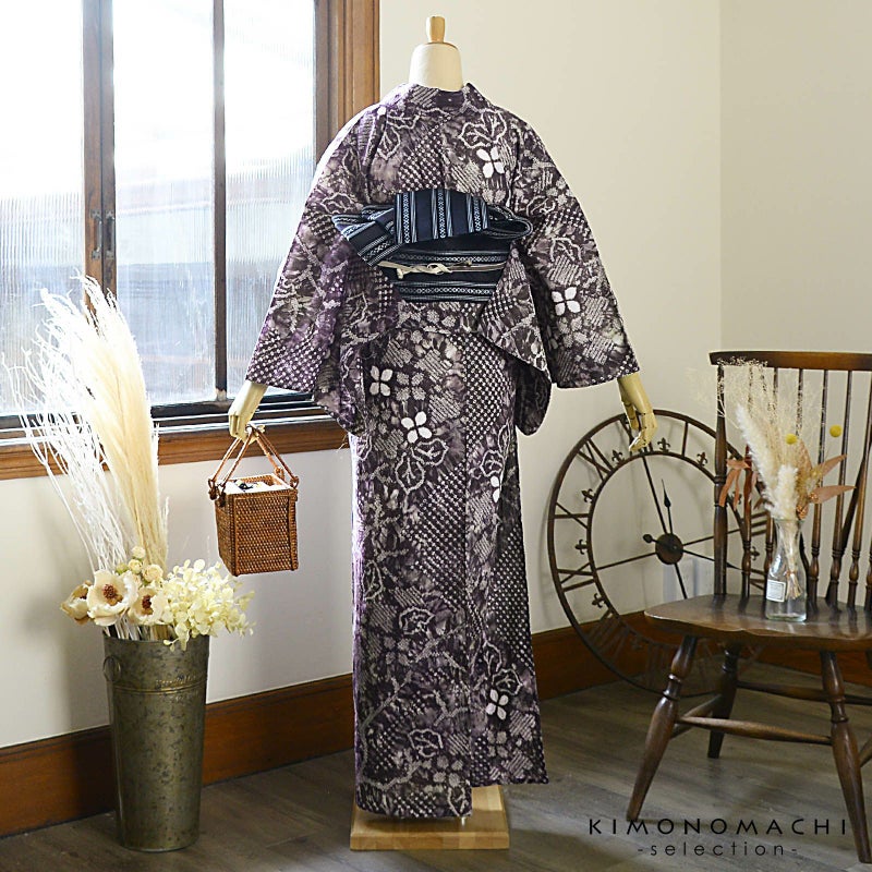 大人のお洒落な絞りの浴衣単品です。お仕立て上がりなので、すぐにご着用いただけます。