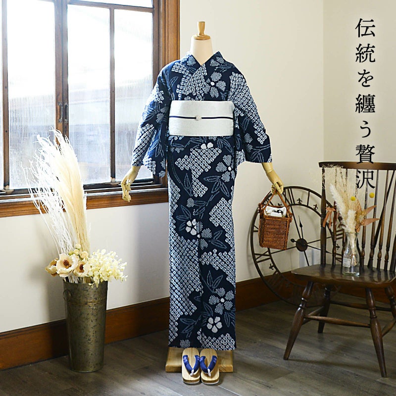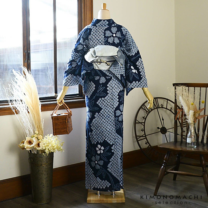 大人のお洒落な絞りの浴衣単品です。お仕立て上がりなので、すぐにご着用いただけます。