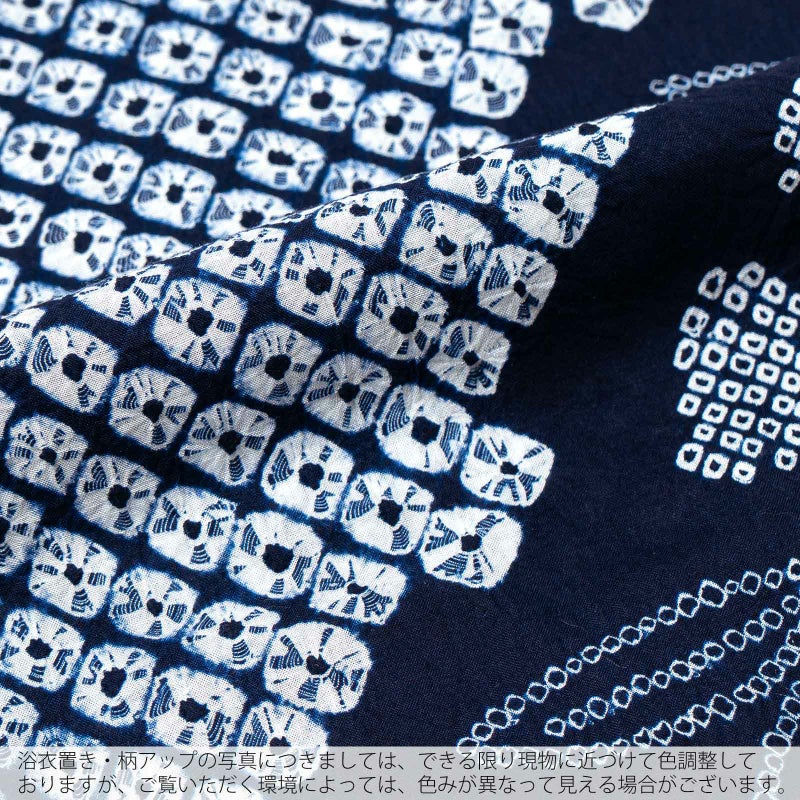 ※ひとつひとつ手作業で職人さんが括り(くくり)や染めなどをほどこし、製作しております。そのため、1点1点、若干ですが、色合い、絞りの大きさが異なります。また、染めのムラ等も絞りのあじとしてご堪能ください。