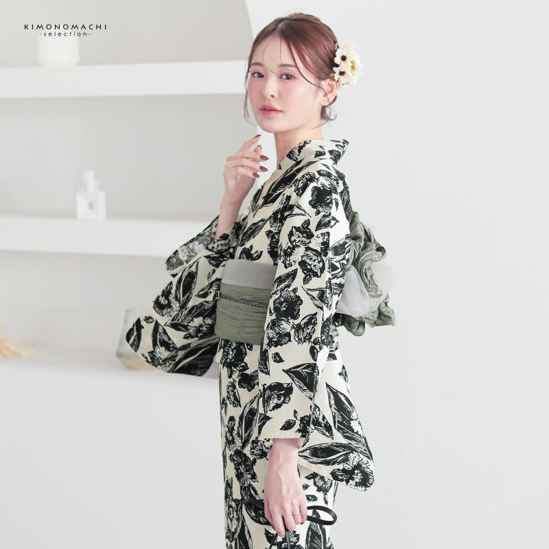 浴衣 レディース 女性浴衣 単品「シンプルライフ:アイボリー カレンデュラ」Fサイズ 綿浴衣 プレタ浴衣 お仕立て上がり浴衣 ブランド浴衣 大人浴衣 女性用 女性浴衣 ゆかた【メール便不可】