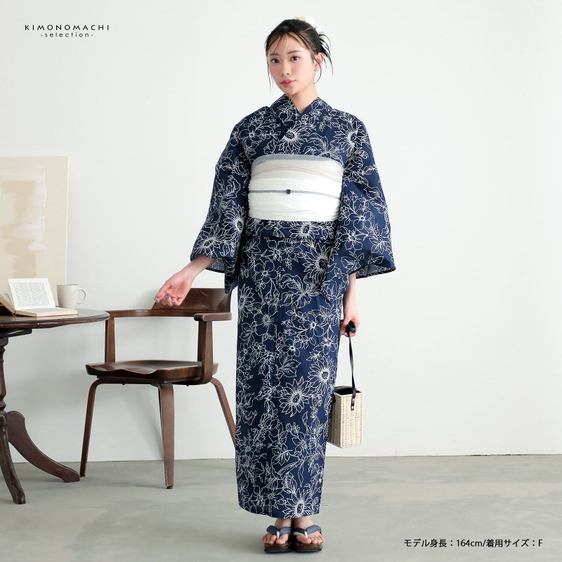 浴衣 レディース 女性浴衣 単品「シンプルライフ:青藍 向日葵」Fサイズ 綿浴衣 プレタ浴衣 お仕立て上がり浴衣 ブランド浴衣 大人浴衣 女性用 女性浴衣 ゆかた【メール便不可】