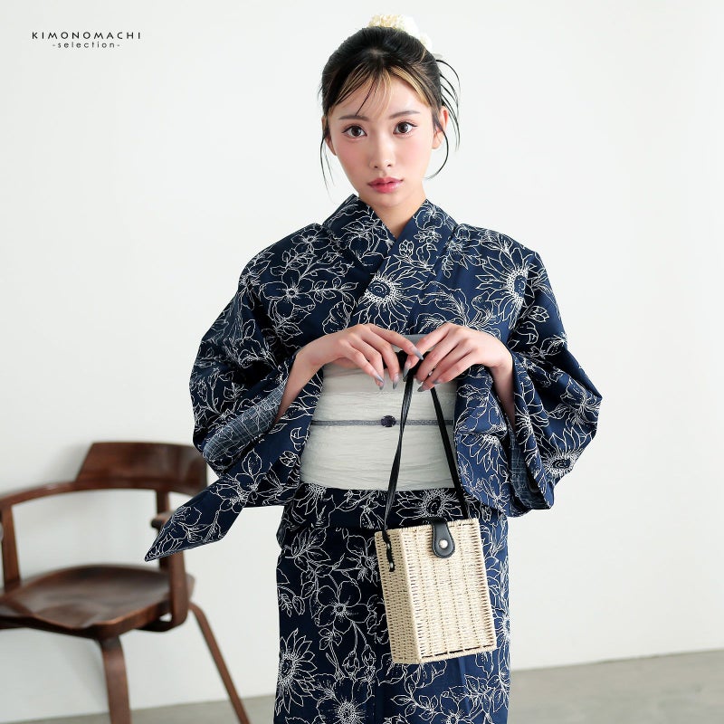【シンプルライフ】お仕立て上がり女性浴衣単品です。夏祭り、盆踊り、花火大会、夏フェスなどの夏のイベントに。