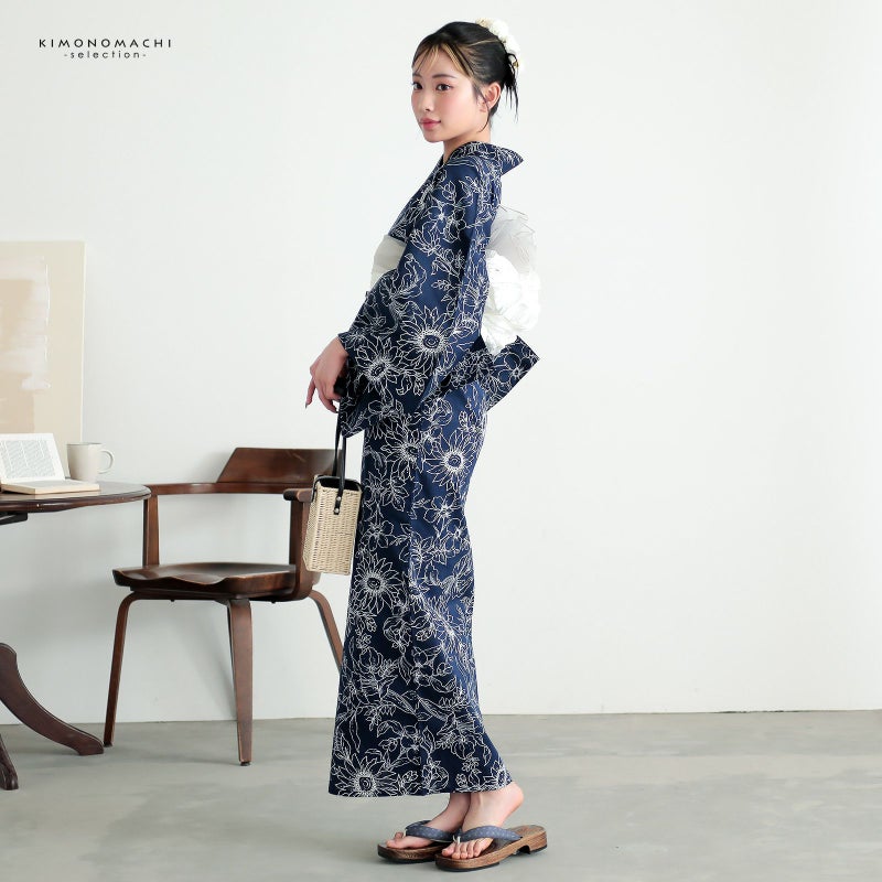 3. 浴衣 レディース 女性浴衣 単品「シンプルライフ:青藍 向日葵」Fサイズ 綿浴衣 プレタ浴衣 お仕立て上がり浴衣 ブランド浴衣 大人浴衣 女性用 女性浴衣 ゆかた【メール便不可】