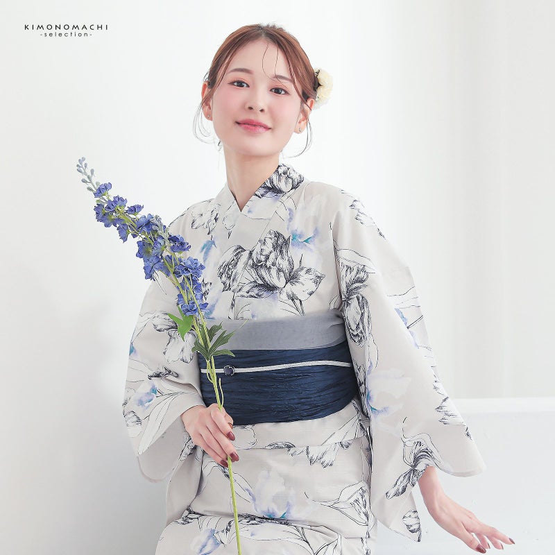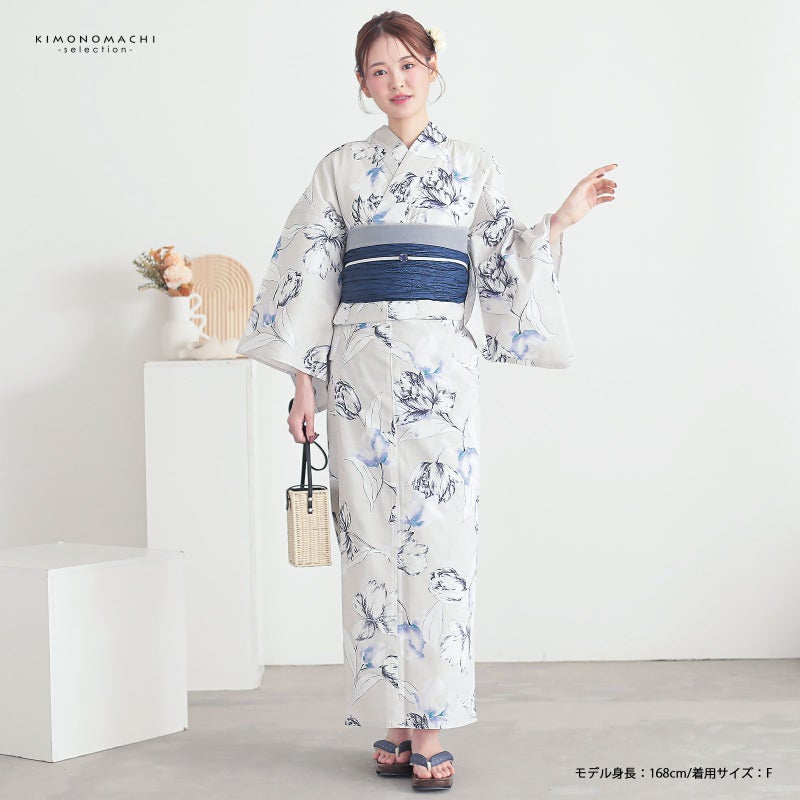 5. 浴衣 レディース 女性浴衣 単品「シンプルライフ:ライトグレー チューリップ」Fサイズ 綿浴衣 プレタ浴衣 お仕立て上がり浴衣 ブランド浴衣 大人浴衣 女性用 女性浴衣 ゆかた【メール便不可】