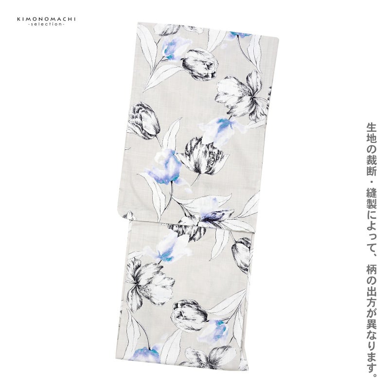 浴衣 レディース 女性浴衣 単品「シンプルライフ:ライトグレー チューリップ」Fサイズ 綿浴衣 プレタ浴衣 お仕立て上がり浴衣 ブランド浴衣 大人浴衣 女性用 女性浴衣 ゆかた【メール便不可】