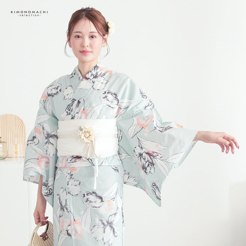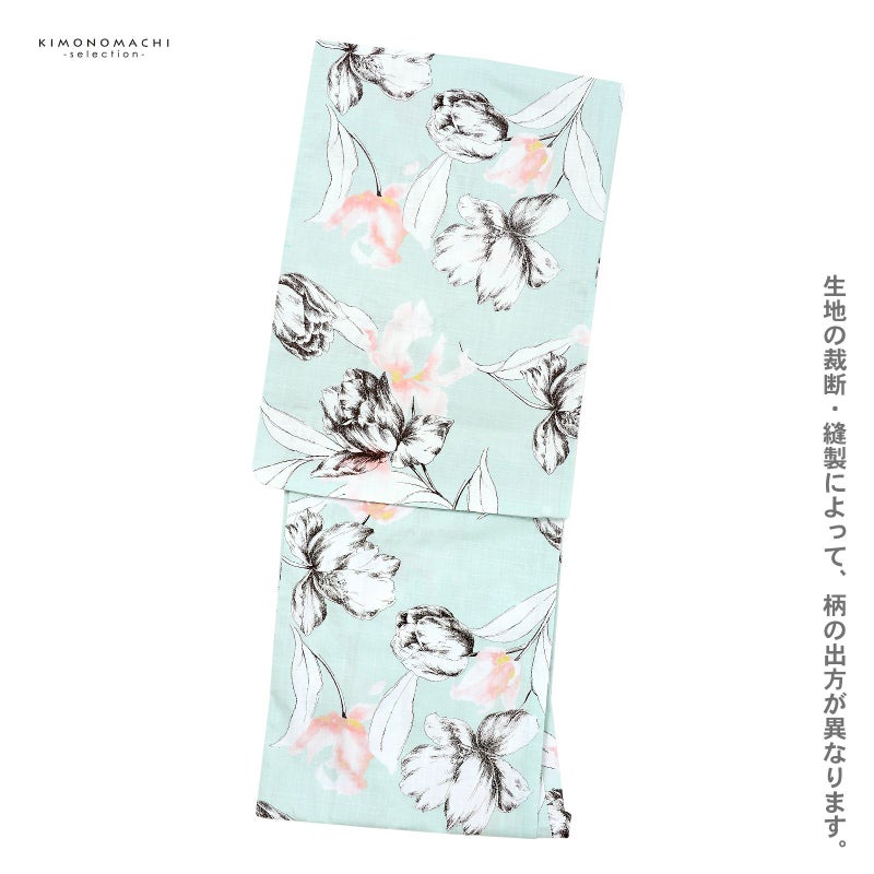 浴衣 レディース 女性浴衣 単品「シンプルライフ:ペールブルー チューリップ」Fサイズ 綿浴衣 プレタ浴衣 お仕立て上がり浴衣 ブランド浴衣 大人浴衣 女性用 女性浴衣 ゆかた【メール便不可】