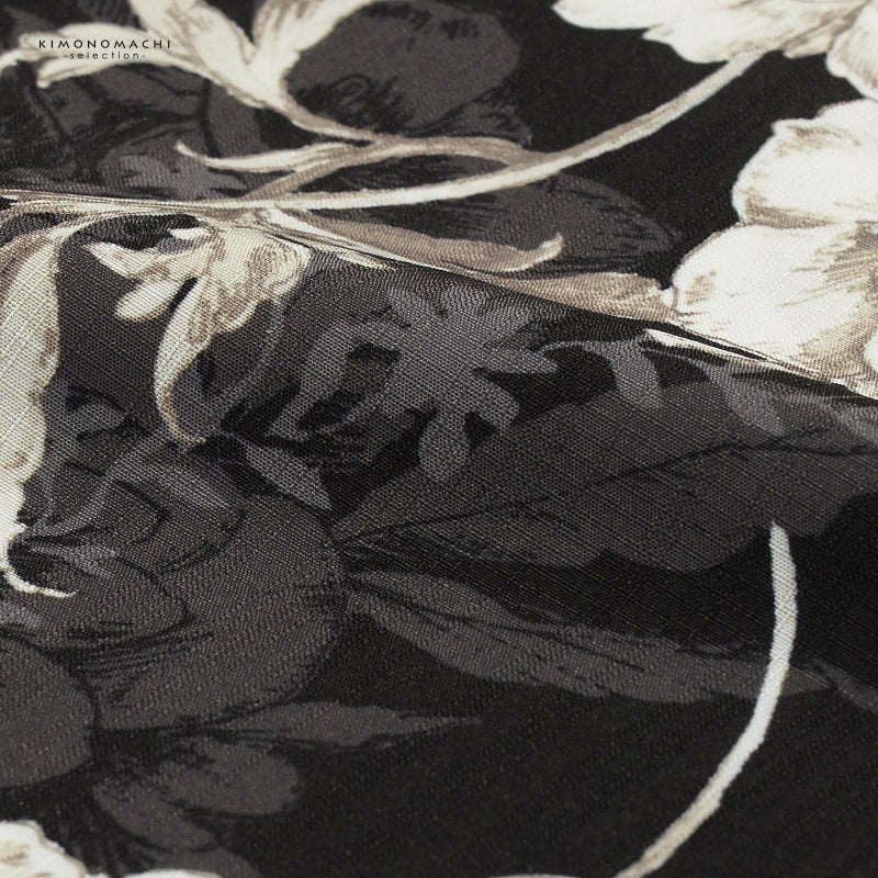 【色柄】黒地。深い抹茶色の線にアイボリーの野の花々。チャコールの花の影。