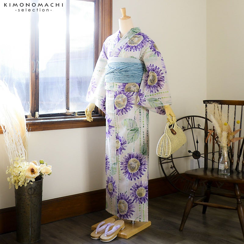 ひと味違う 大人のブランド浴衣単品 浴衣 レディース ブランド浴衣 単品「みすゞうた 向日葵 紫色 M 2502」Fサイズ 大人 綿絽浴衣 女性浴衣単品 レディース浴衣単品 個性的 花火大会 夏祭り 女性浴衣 女性ゆかた 夏着物<H>【メール便不可】