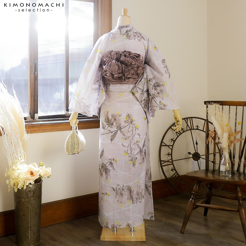 ひと味違う 大人のブランド浴衣単品 浴衣 レディース ブランド浴衣 単品「みすゞうた あけかたの花 ピンクベージュ M 2511」Fサイズ 大人 綿絽浴衣 女性浴衣単品 レディース浴衣単品 個性的 花火大会 夏祭り 女性浴衣 女性ゆかた 夏着物<H>【メール便不可】