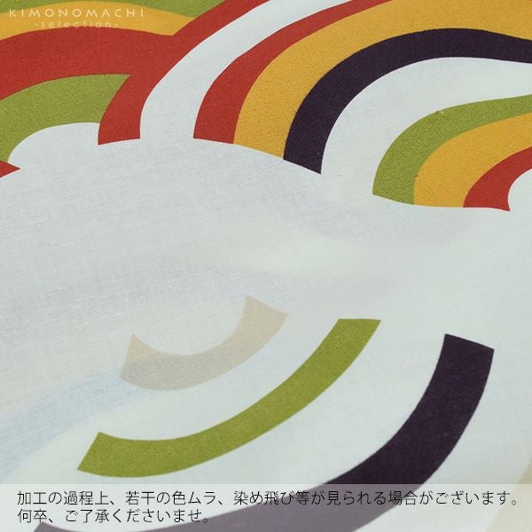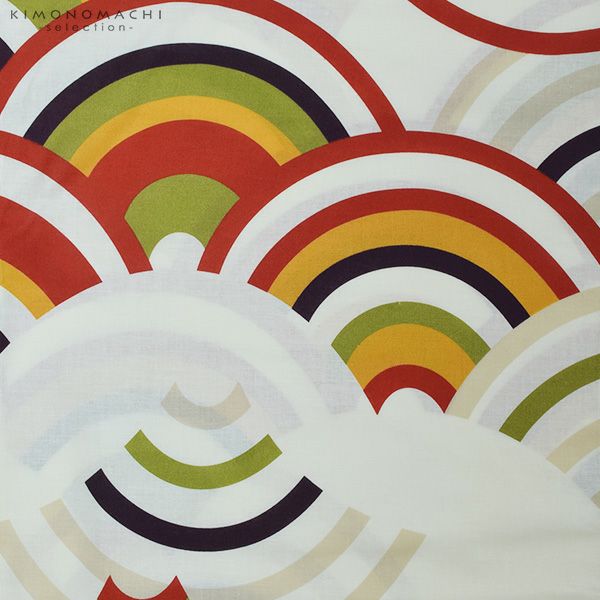 【カラー】生成り地に赤色、山吹色、暗い紫色の青海波模様。