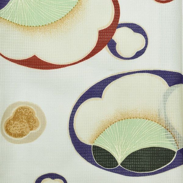 【カラー】わずかに生成りみを含んだ白色地に、梅の花模様。大きな梅の模様が大胆で、古典柄ですが、モダンな雰囲気。