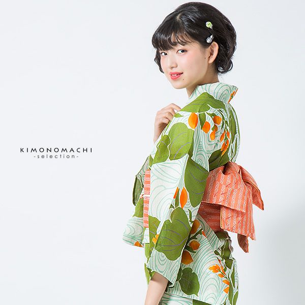 7. 【Prices down2】芸艸堂浴衣単品「緑×オレンジ 水葵」山本雪桂 綿浴衣 日本製 UNSODO 綿紅梅 【メール便不可】m1906ykl20yk★55%OFF