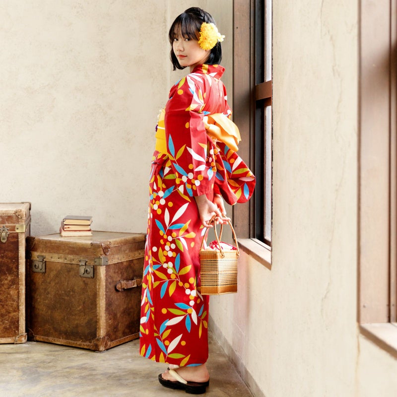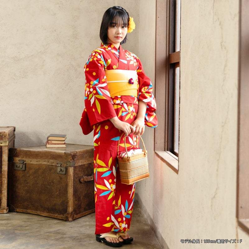 5. 女性浴衣単品「赤色 南天」綿浴衣 女性浴衣 フリー 綿 お仕立て上がり浴衣 8FS-A-15【メール便不可】ss2306ykl30