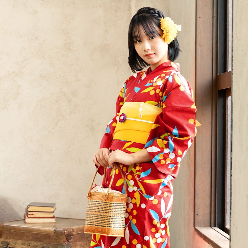 7. 女性浴衣単品「赤色 南天」綿浴衣 女性浴衣 フリー 綿 お仕立て上がり浴衣 8FS-A-15【メール便不可】ss2306ykl30