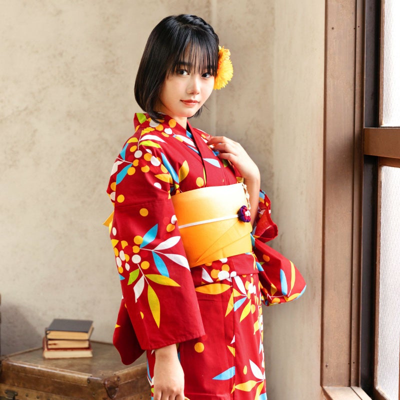 3. 女性浴衣単品「赤色 南天」綿浴衣 女性浴衣 フリー 綿 お仕立て上がり浴衣 8FS-A-15【メール便不可】ss2306ykl30
