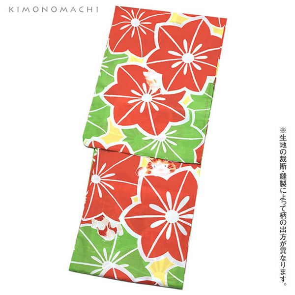【Prices down】女性浴衣「赤×もえぎ色 お花と猫」Sサイズ 夏祭り、盆踊りに レトロ ポリエステル 女性浴衣 【メール便不可】m1906ykl50ss2506ykl10