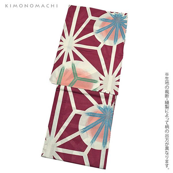京都きもの町オリジナル 女性浴衣 【Prices down】女性浴衣「紅紫 麻の葉模様」フリーサイズ 夏祭り、盆踊りに レトロ 綿 女性浴衣 【メール便不可】ss2512ykl10