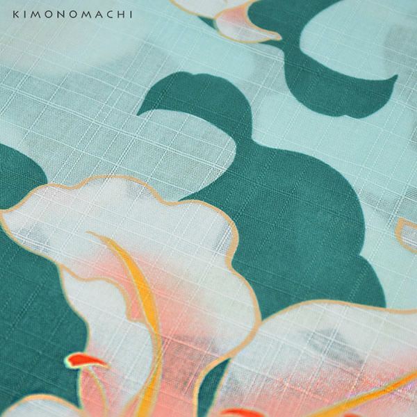 京都きもの町オリジナル浴衣単品 花火大会、夏デートに 【Prices down2】京都きもの町オリジナル浴衣単品「グリーン 百合」S、フリー 綿浴衣 お仕立て上がり浴衣 レディース 女性浴衣 【メール便不可】ss2506ykl10